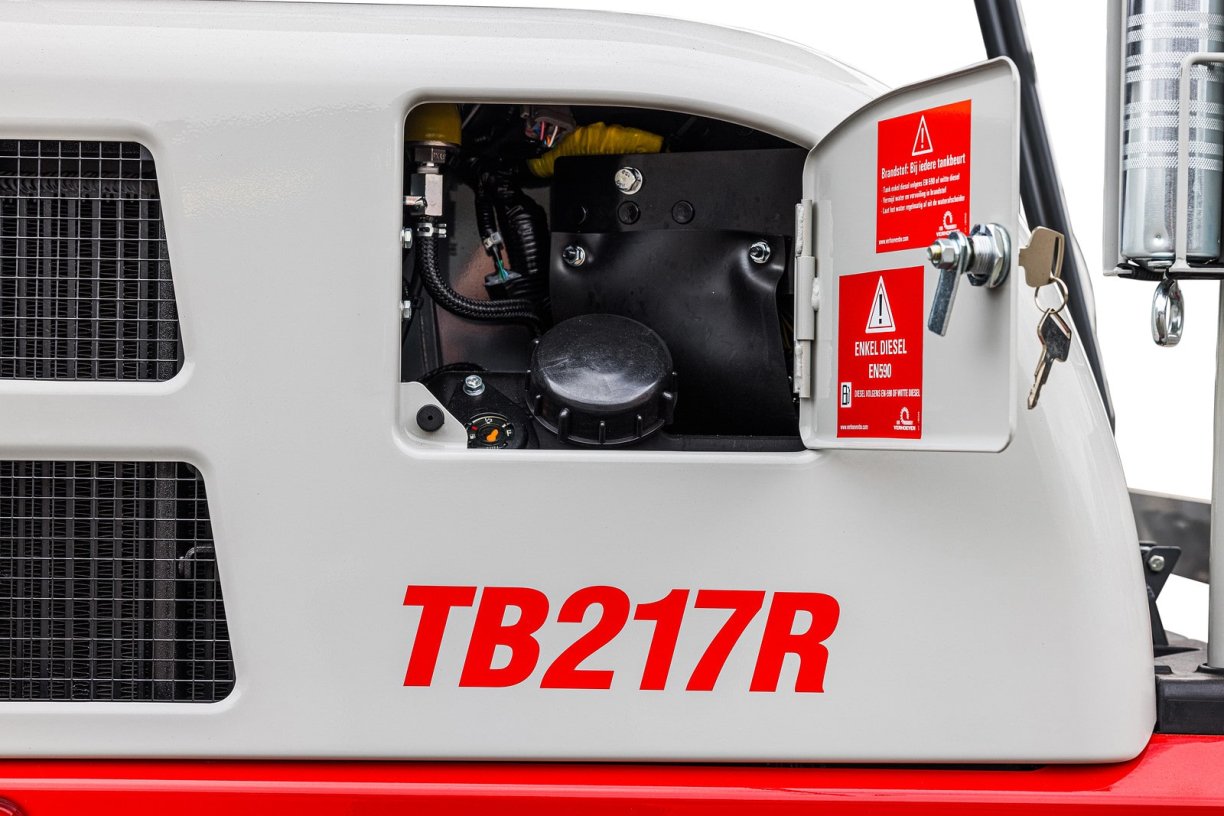 Bij de TB217 R minigraver is de stabiliteit nóg verder verhoogd en het graafbereik is vergroot. Dit is bereikt door het toevoegen van contragewicht aan de onder- en achterzijde & het verlengen van de graafarm. Daardoor is deze 1.7 tonner ook beter toegerust voor het gebruik van zwaardere uitrustingsstukken zoals bijvoorbeeld een kantelkop o.i.d..