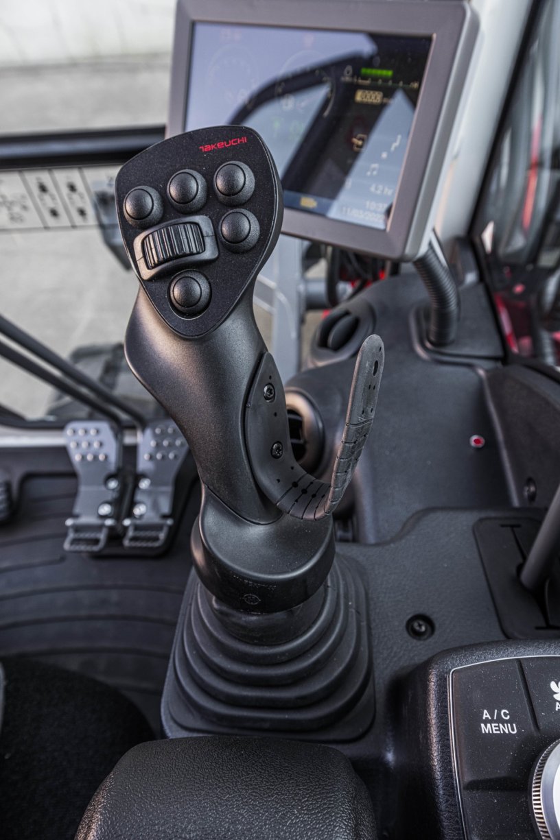 Daarnaast heeft het design van deze eerste TB-3 serie een upgrade gekregen. Het is de eerste Takeuchi graafmachine die voorzien is van een touchscreen monitor waarop alle functies nog eenvoudiger en overzichtelijker te bedienen zijn. Nog een nieuwe feature is de uitstaplamp: zodra je het contact uit zet wordt de grond gedurende 15 seconden verlicht, zodat je altijd ziet waar je uitstapt.